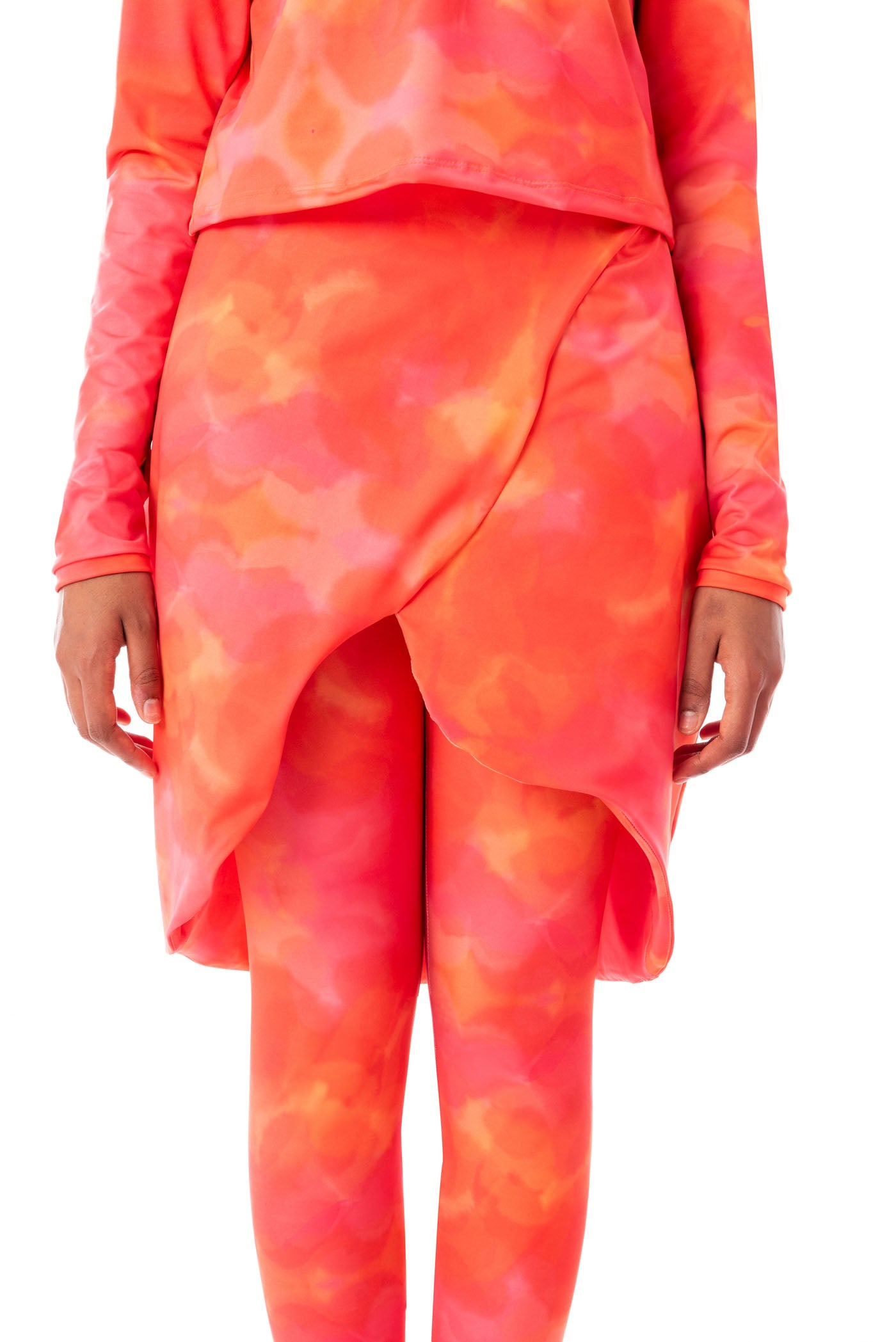 This vibrant, asymmetrical skirt is a stunning statement piece that effortlessly combines elegance and modern flair. The eye-catching, abstract pattern in warm tones adds a splash of color to any outfit, while the unique draped design enhances your silhouette with a touch of sophistication. Perfect for a night out or a chic daytime look, this skirt brings a playful yet refined edge to your wardrobe. Its lightweight fabric ensures comfort and ease, making it an ideal choice for any occasion where you want to stand out in style.