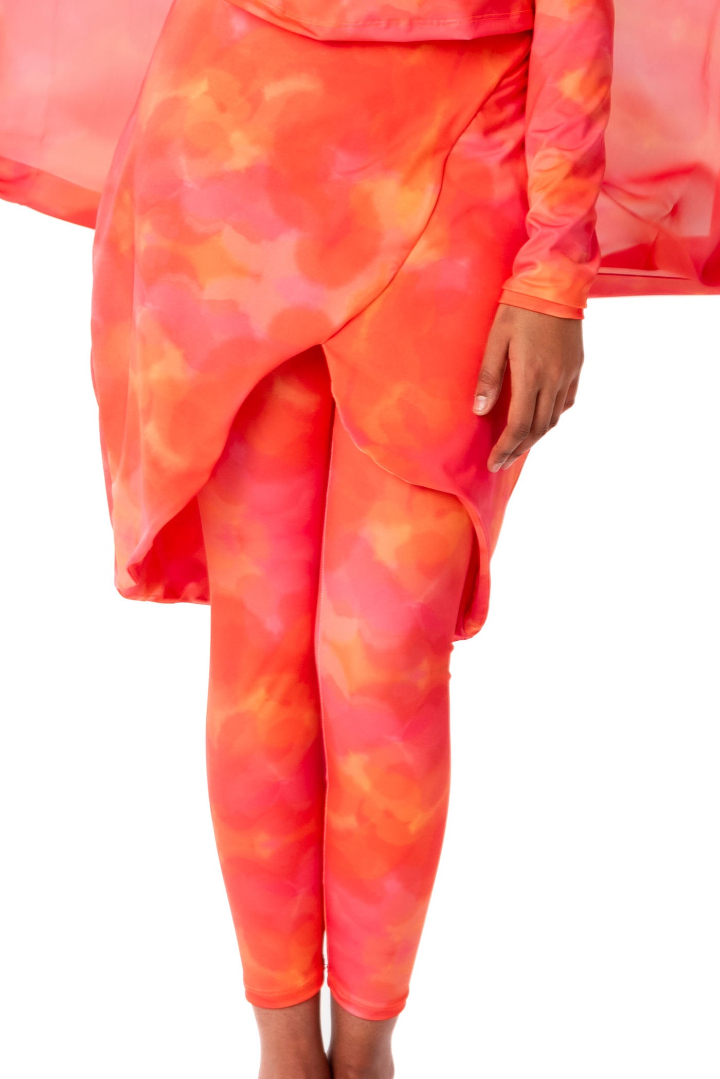 This striking full-coverage swim set is designed for those who seek both style and functionality. Featuring a vibrant, abstract pattern in warm hues, this ensemble includes a long-sleeve top, leggings, and a matching headscarf, all crafted from lightweight, UV-resistant fabric. The draped skirt overlay adds a touch of elegance and movement, making this outfit perfect for the beach or poolside. With its bold design and practical features, this swim set ensures you stay comfortable, confident, and effortlessly chic in the sun.